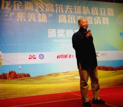 本次比赛从赛事策划、赛事组织、活动安排及颁奖晚宴,精心筹备良久,秘书处全心全意以优质的服务回馈广大会员,同时邀请原区人大主任、龙企两会创始会长、资深高尔夫球爱好者廖寿伦先生出席本次赛事活动。此次活动获得了深圳集美新材料股份有限公司的全程赞助与大力支持。 中午12:30,原区人大主任、龙企两会创始会长廖寿伦,深圳市集美新材料股份有限公司总经理陈秋鹏,深圳市瑞高利家具有限公司董事长刘利铭,深圳市雅尔典科技有限公司总经理詹述忠等相关领导出席了开球仪式,随着彩球的开出,比赛的正式角逐也在欢呼声中拉开序幕。 经过长达4个多小时的激烈比赛,本次邀请赛各大奖项花落各家。总杆冠军被陈秋鹏陈总斩获,总杆亚军与季军分别被詹述忠、刘利铭猎取。净杆前三名分别是廖寿伦、贾福忠、曾秀华。最近旗杆奖与最远距离奖分别也被陈秋鹏与詹述忠收入囊中。 下午18:00,所有来宾一同参加了颁奖晚宴。晚宴开场,廖寿伦先生作了诚挚热情的祝贺辞;祝贺龙企两会高尔夫球队正式成立,恭喜今天球队成立的第一场活动取得圆满成功并祝愿各位球友球技日益精湛。 特邀嘉宾:原区人大主任、龙企两会创会会长廖寿伦致贺辞 接着由区政协常委、龙企两会、区金融商会会长黄时余先生为本次球队队长陈秋鹏及副队长詹述忠进行了授牌。 黄时余会长为龙企两会高尔夫球队队长陈秋鹏与副队长詹述忠授牌 龙企两会高尔夫球队队长陈秋鹏代表发言 颁奖仪式也陆续在惊喜与欢笑间展开。晚宴的气氛高潮迭起,杯盏交错间,言笑晏晏,其乐融融,在声声的获奖祝福声中,颁奖晚宴在一片欢乐祥和的氛围中圆满落幕。 最后,让我们期待龙企两会高尔夫球队的下一次活动早日到来。